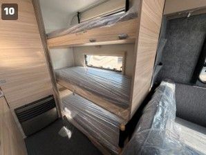 Polster Serie, Außenfarbe Silber, Fußbodentemperierung, Mikrowelle, Fenster in der Eingangstür komplett, Alufelgen, 3er Stockbett, Autarkvorbereitung, Warmwasser 5L, 12Volt Umluft, Heizung 3004, Antischlingerkupplung, TV Vorbereitung innen, Frischwasser 45L, Abwassertank rollbar, Ambiente Beleuchtung