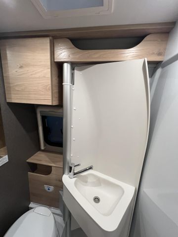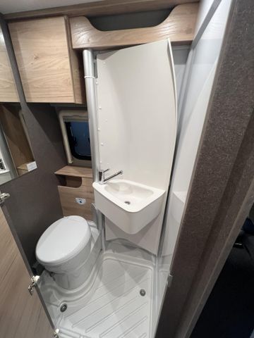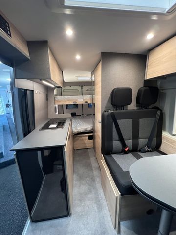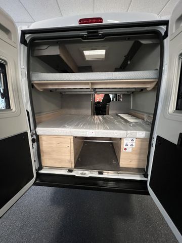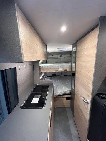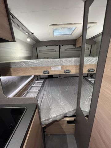 Modell 2026, Motor / Chassis: Fiat Ducato Multijet 3, Leistung: 103 kW / 140 PS, Getriebe: Schaltgetriebe, zul. Gesamtgewicht: 3499 kg, Bett(en): Doppelbett, Etagenbetten, Polster: Wohnwelt Saturn, Holzdekor: Noce Nagano