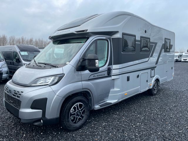 Funktionsdoppelboden für integrierte Versorgungseinrichtungen, Isolierung und zusätzlichem Stauraum, Alde-Warmwasserheizung, exklusives Adria Desgin SunRoof und großes Panoramafenster, silberne Lackierung, Adria "Comprex"-Aufbaukonstruktion, Multimedia-Wand mit Halterung für 32''-TV, USB-Steckdosen und Telefon-Ladefläche, Modulare LED-Rückleuchten