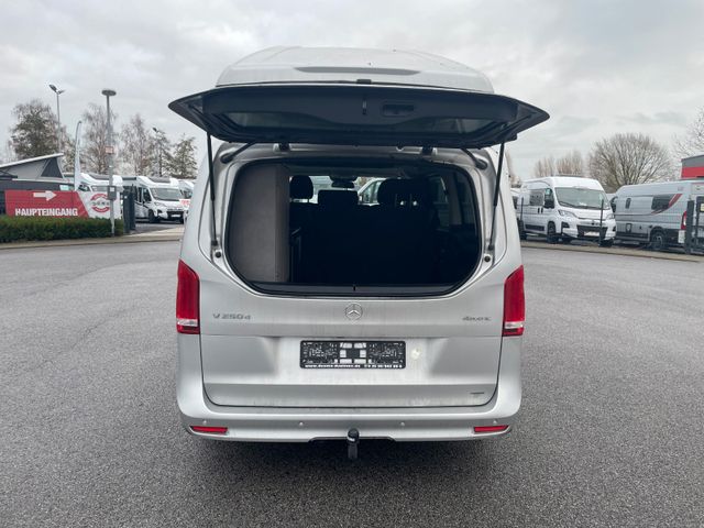 V 250, Brilliantsilber Metallic Lackierung, Aufstelldach in Wagenfarbe, 2 Cupholder Aufsteckbar hinten, Agility Control Fahrwerk, Allradantrieb permanent, Distronic ( Abstandstempomat ), Display Diagonale ( 10,25" ), Fahrassistenzpaket, Lernlichtassistent Plus, Intelligent Light System, Lederlenkrad, 19" Leichtmetallfelgen, Lordosestützen vorne, Navigation, Parkpaket mit 360° Kamera, Separat zu öffnende Heckscheibe, Sitzkomfort Paket, Sitzheizung vorne, Smartphone Integrationspaket, Spiegel Paket, Verkehrszeichenassistent, Zusatzhauptschlüssel 2x, Wohnraumstandheizung, Markise, Tentrail / Kederschiene Beifahrerseite