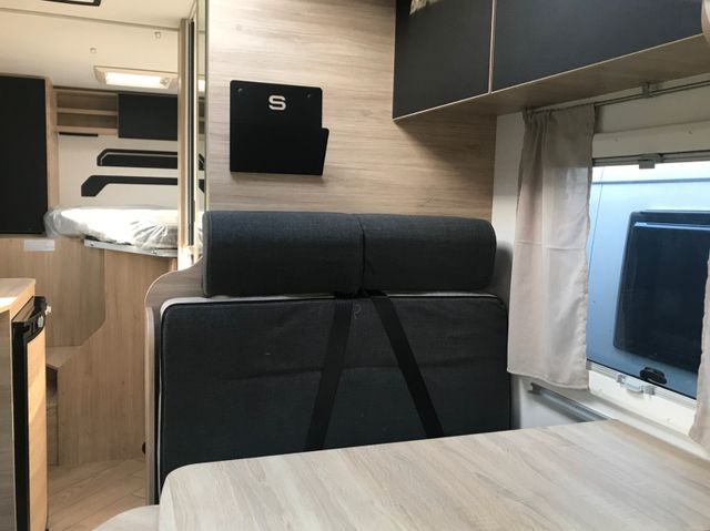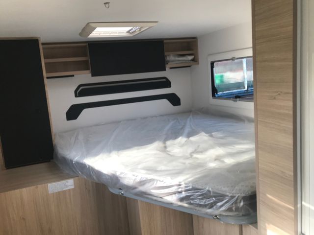 Doppelverglasung mit Kombirollos, Fix and Go, Gedämpfte Schrankscharniere softclose Höhenverstellbare Drehsitze mit zwei Armlehnen, IRP-Struktur: Polyester (GFK) -Boden, -Wände und -Dach, Bodenstärke 64 mm, Isolierte Aufbaustufe, Klimaanlage Fahrerhaus automatische, Lichtautomatik und Automatischer Scheibenwischer mit Regensensor, Nebelscheinwerfer, Panorama-Dachhaube (oder 2 Dachhauben), START & STOP, Schonbezüge für Fahrerhaussitze, TV-Vorbereitung, Technibox