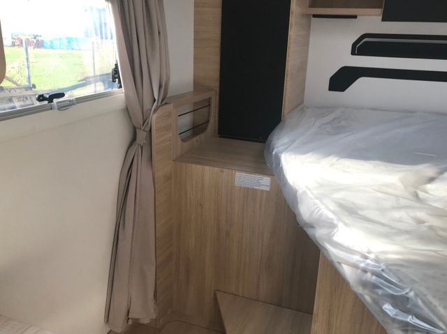 Serienaustattung:Außenbeleuchtung Eingangstür, Dieselheizung während der Fahrt benutzbar, Dinette-Vorhänge, ESP, Elektrische Feststellbremse, Elektrische Rückspiegel mit Abtau-Automatik, FORD pass, Fahrer- und Beifahrerairbag, Fenster