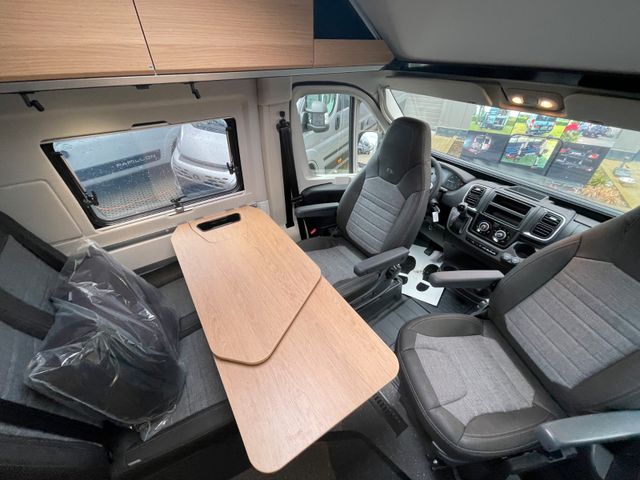 Airbag Fahrer/ Beifahrer, ABS/ASR/ESP/EBD/HBA/LAC/MSR/Hillholder, Traction+,Tagfahrlicht, Einparkhilfe hinten, Klimaanlage Fahrerhaus, Tempomat, Außenspiegel elektrisch verstell- und beheizbar / Fensterheber Fahrerhaus elektrisch, Funk-Zentralverrieglung, Lenkrad und Schaltknauf in Teilleder, Radio-Vorbereitung Fahrerhaus, Komfortsitze FH im Wohnraumdesign/drehbar/höhenverstellbar mit Sockelverkleidung, Fahrerhaus- und Wohnraum-Scheiben getönt, Fenster inkl. Kombirollo in Hecktür links, Falt-Verdunkelung Frontscheibe, Falt-Verdunkelung FH-und Wohnraum-Seitenfenster, Fliegenschutz an Schiebetür, Einstiegsbeleuchtung, LED-Ambientebeleuchtung, Lade-Booster (für optimale Ladung während der Fahrt), Sicherheits-Gasregler MonoControl CS, Gasfilter, Abwassertank isoliert und beheizbar, Ablassventil elektrisch, Abdeckung Kocher und Spüle, Sonnenschutz Markise, Solaranlage!