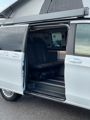 V-Klasse 220 163PS, Automatikgetriebe, Polster Santos, Aufstelldach Arktikweiß, Leichtmetallräder 17", Lordosestützen vorne, Park Paket ( Rückfahrkamera + Parksensoren vorne u. hinten ), Separat zu öffnende Heckscheibe, Sitzkomfort Paket, Sitzheizung vorne, Smartphone Integrationspaket, Zusatzhauptschlüssel ( 2x ), Wohnraumstandheizung, Markise, Tentrail/Kederleiste