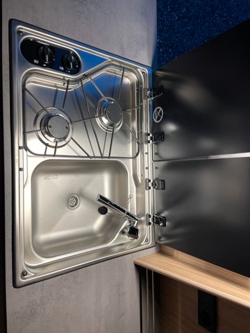 Expeditionsgrau, Holzdekor San Marco, Wohnwelt Samba, Premium Paket, 8-Gang Automatikgetriebe, Reifendrucksensoren, Zweiter Funkschlüssel, Bettverbreiterung 3. Schlafplatz quer, Tisch mit Ausdrehteil, Lichtkranz, Zusätzlicher Steckdosensatz, Inet X Bedienteil, Gas Duo Control, Toilettenfenster, Schließhilfe Softlock für seitliche Schiebetür, Einlegebrett Duschwanne, 1x LiFePO4 100AH, Solaranlage 200W mit Laderegler, Raintec inkl. Beleuchtung, Markise