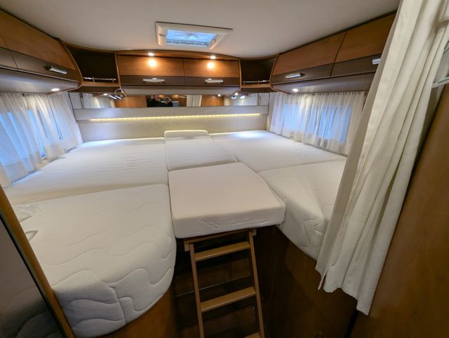 Mittelsitzgruppe, Seitensitzgruppe, WC, TV, Solaranlage, Heckgarage, Festbett,