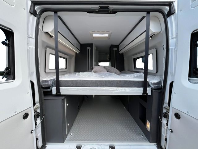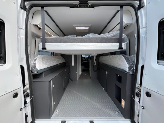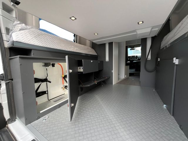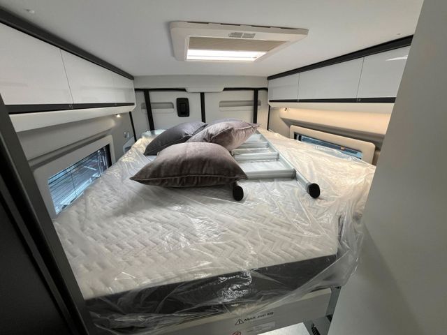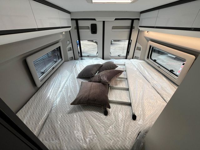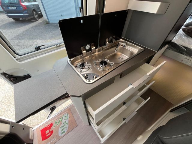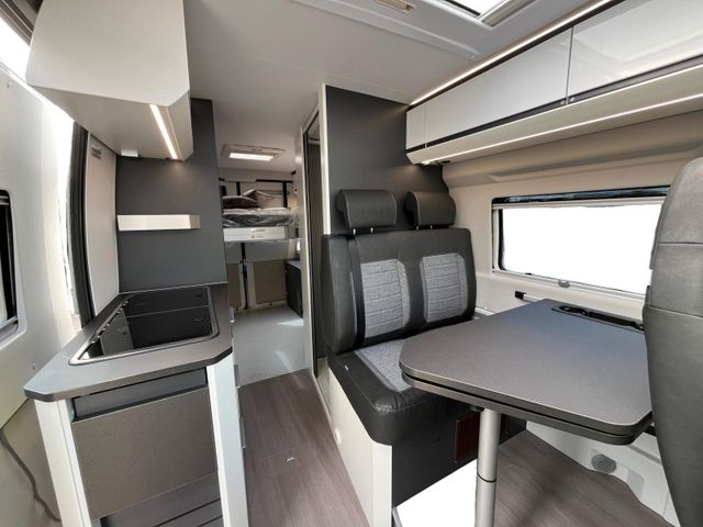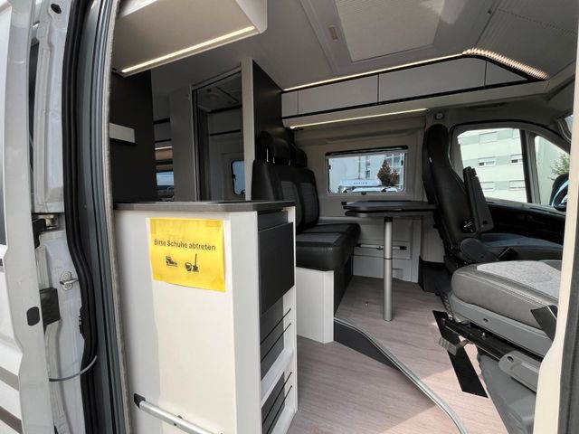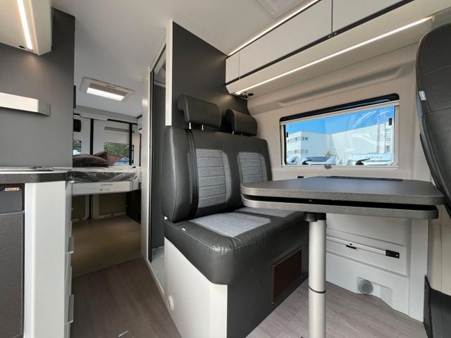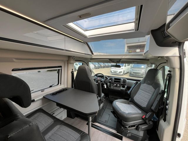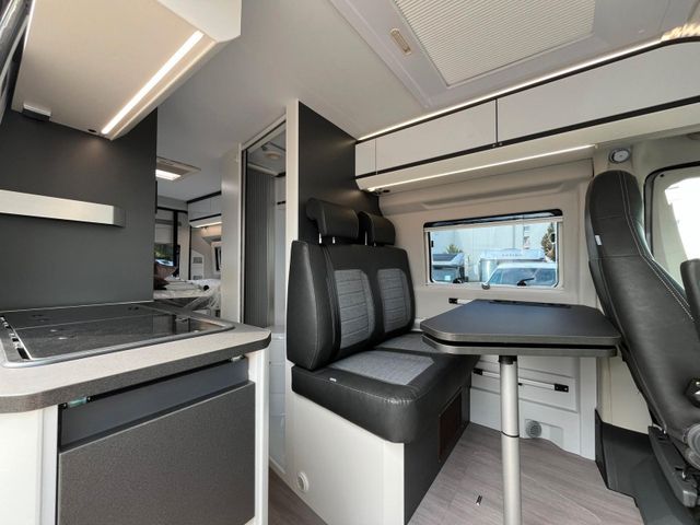 Nebel-Scheinwerfer mit Kurvenlicht-Funktion, Rückfahrwarner, Lenkrad und Schaltknauf in Teilleder, Kühlergrill + Scheinwerferrand schwarz und Skidplate schwarz, Fahrerhausscheiben getönt, Wohnraumscheiben getönt, Fenster inkl. Kombirollo in Hecktür links, Falt-Verdunkelung Frontscheibe, Falt-Verdunkelung FH-Seitenfenster, Falt-Verdunkelung Wohnraum-Seitenfenster, Fliegenschutz an Schiebetür, Einstiegsstufe elektrisch, Einstiegsbeleuchtung, LED-Ambientebeleuchtung, Lade-Booster (für optimalere Ladung während der Fahrt), Sicherheits-Gasregler MonoControl CS + Gasfilter, Abwassertank isoliert und beheizbar, Abdeckung Kocher, Abdeckung Spüle