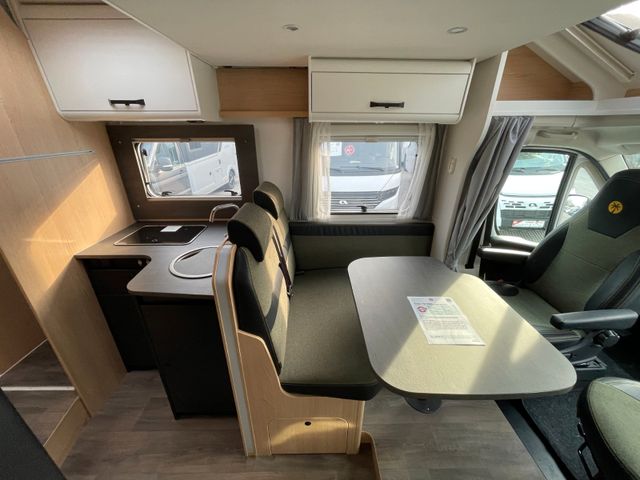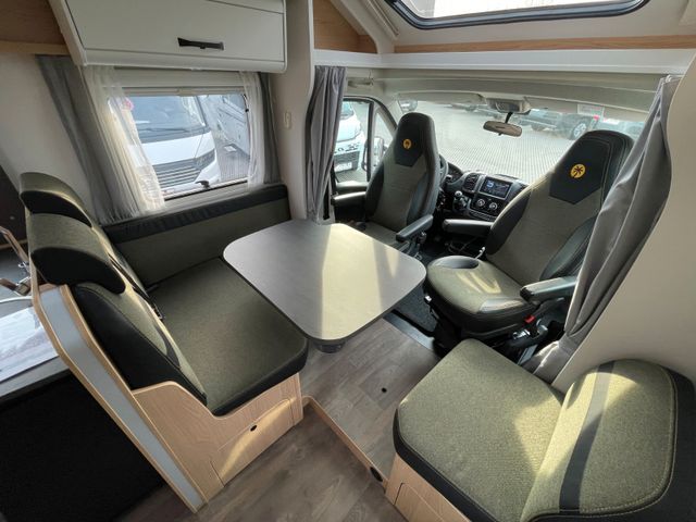 Maße & Basisfahrzeug: • Länge: 743 cm, Breite: 232 cm, Höhe: 293 cm • Motor: Fiat Ducato 2.2 Multijet – 140 PS • Getriebe: Schaltgetriebe • Außenfarbe: Weiß • Wohnwelt: Green Trail