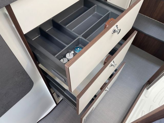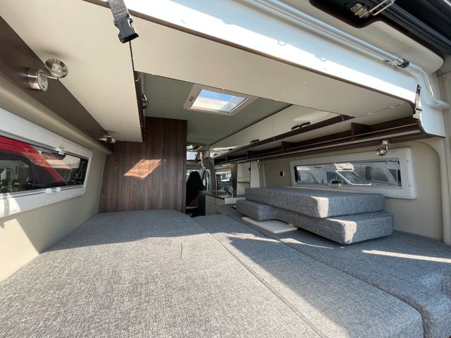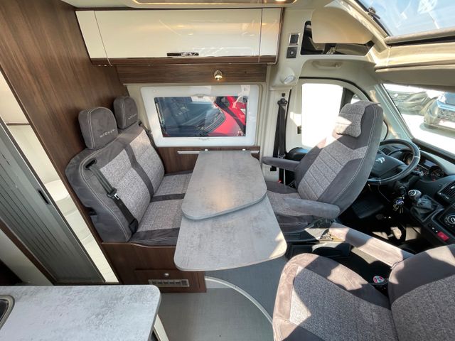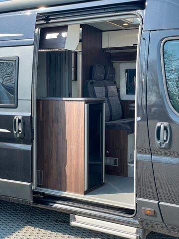 Dank des leistungsstarken 140 PS Citroen-Chassis sowie Ausstattungsmerkmalen wie dem All-In Paket, der Duo Control CS und einer Rückfahrkamera ist das Fahrzeug sowohl für längere Reisen als auch für spontane Ausflüge bestens geeignet. Zusätzliche Sicherheit bieten die HeoSafe-Verriegelungen an Schiebetür und Heck.