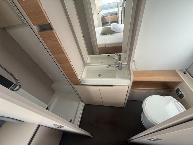 Polster Stone Island, Fußbodentemp., Alde Heizung, Truma Duo Control CS, Mover Reich Easydriver Pro 2.0, Autark 12V AGM Batterie, Dachklima Aventa Compact Plus, Radträger Thule SuperB 2-Fach, Kühlschrank 155L, Antischlingerkupplung, Stoßdämpfer, Abwassertank rollbar, Bluetooth Sound System, reparierter Wasserschadem (über Garantie), TÜV, Gasprüfung und neue Reifen beim Kauf!